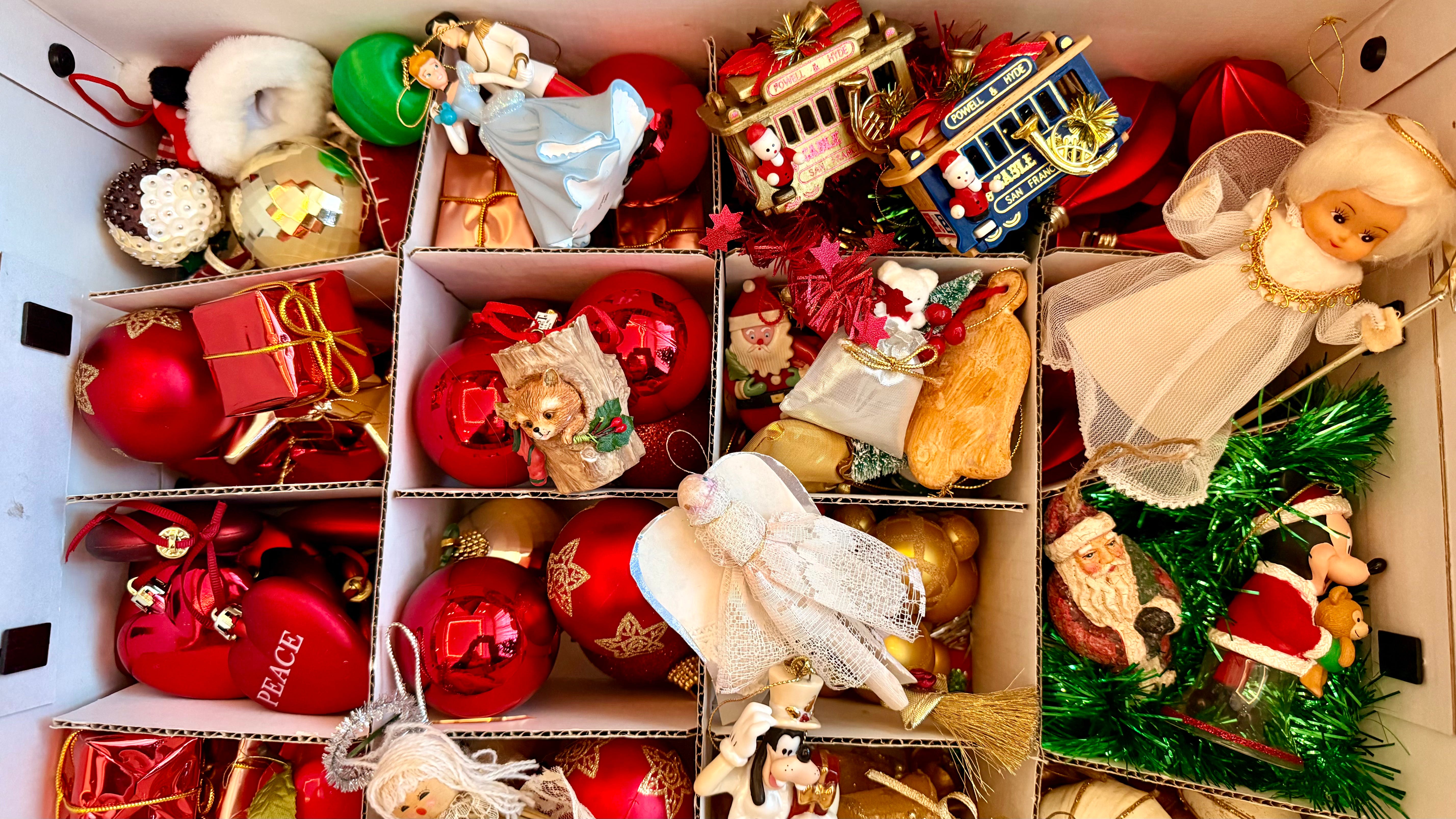 I will carefully place each ornament. The cable cars with Santa hanging out the back that Dad brought me from his work trip to San Francisco. The little wooden raccoon poking out his head from the tree stump Mum brought back from another holiday. The glistening little butterflies from Japan. Grandma’s candle with the little drummer boy she bought when Grandad returned from the Second World War.
